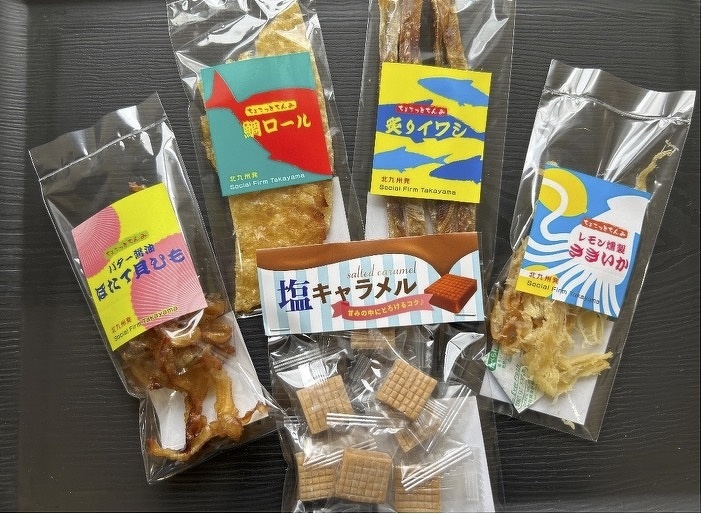 【ちょこっと珍味シリーズ】各商品100円 小腹がすいた時にちょこっと…。お酒の肴に…。 炙りイワシ 鯛ロール NEWレモン燻製さきいか NEWバター醤油ほたて貝ひも 【取り扱い店舗】 いずれの商品も主にバザーや催し物の際に販売しています。 小倉・京町にある『一丁目の元気』にて随時販売取り扱っています。 『一丁目の元気』 所在地:北九州市小倉北区京町1丁目6番1号 (京町銀天街紫川入口の角、常盤橋そば) 営業時間:11時から18時まで 定休日:毎週日・月曜日(イベント時除く)